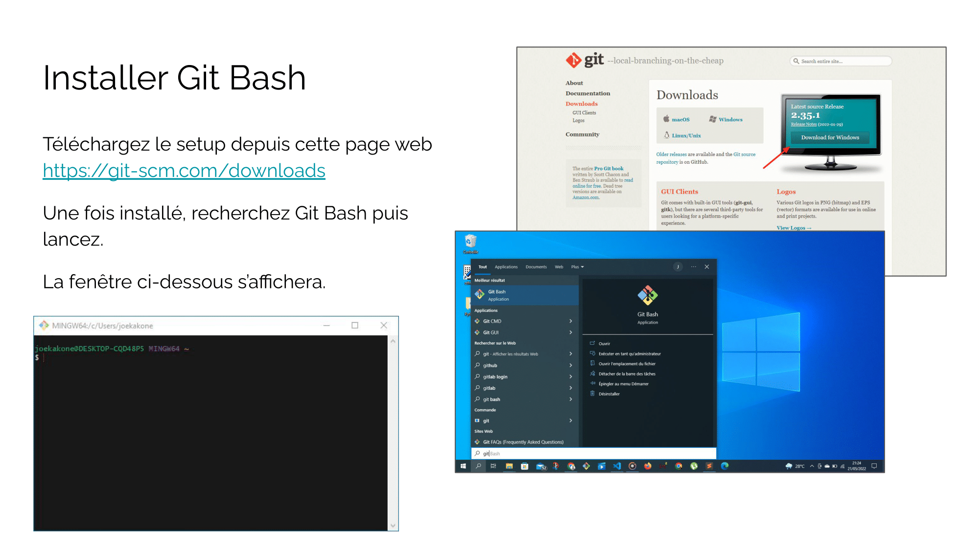 Une fois l'installation terminée, recherchez puis lancer Git Bash.